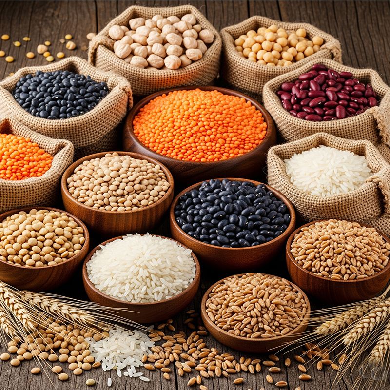 Kırmızı ve yeşil mercimek, nohut, kuru fasulye, barbunya, börülce.